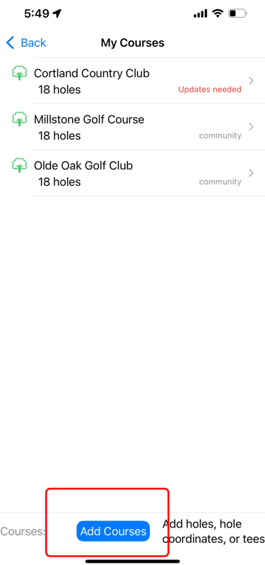 Pan the map to that location. Tap once to search the region, then tap the course to add it.