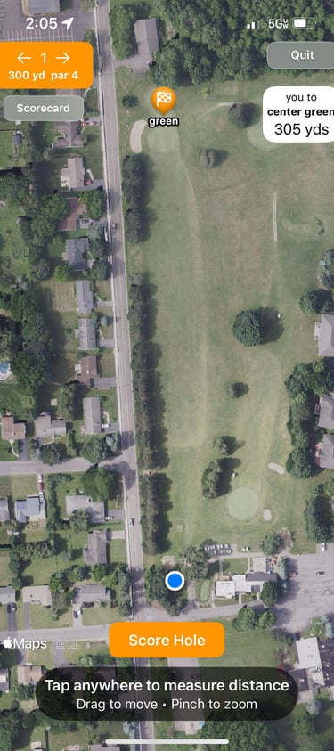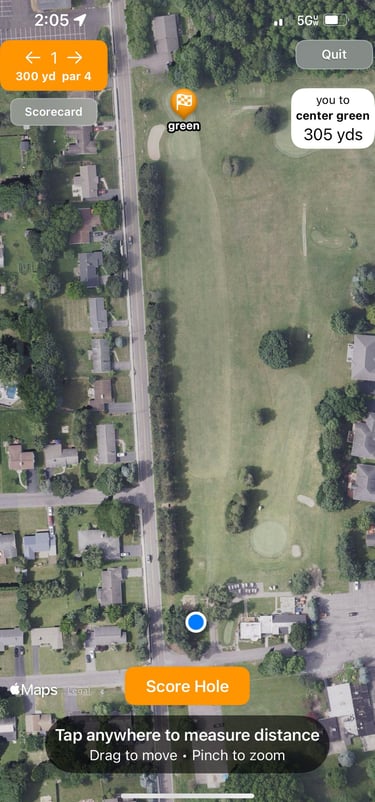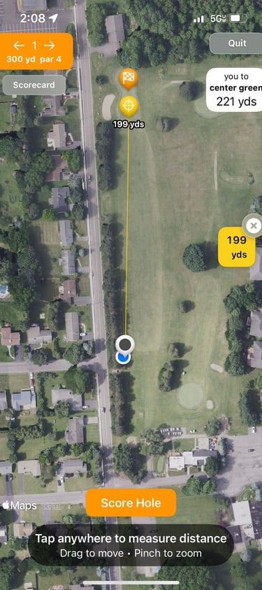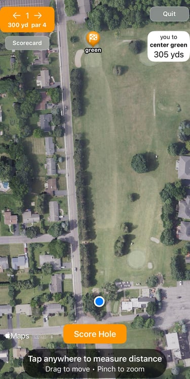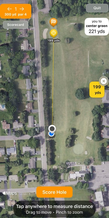 As you move down the fairway, the blue dot and center green yardage will update automatically.
