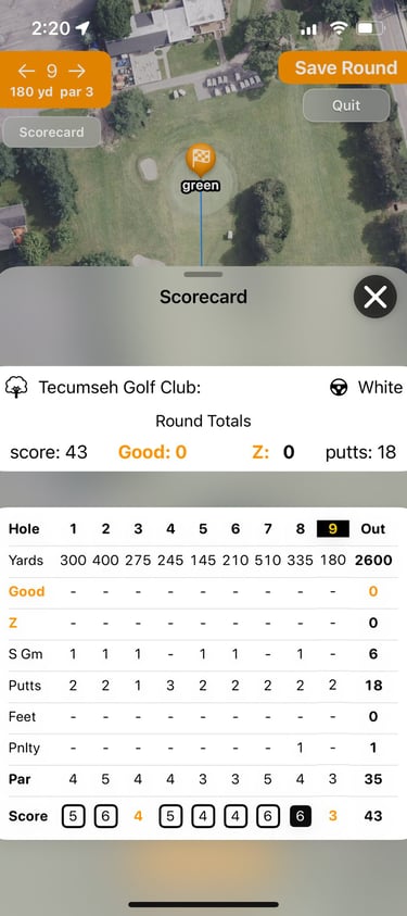 A hole that has already been played will show your score, and the number of short game shots and putts, in the lower portion of the screen.